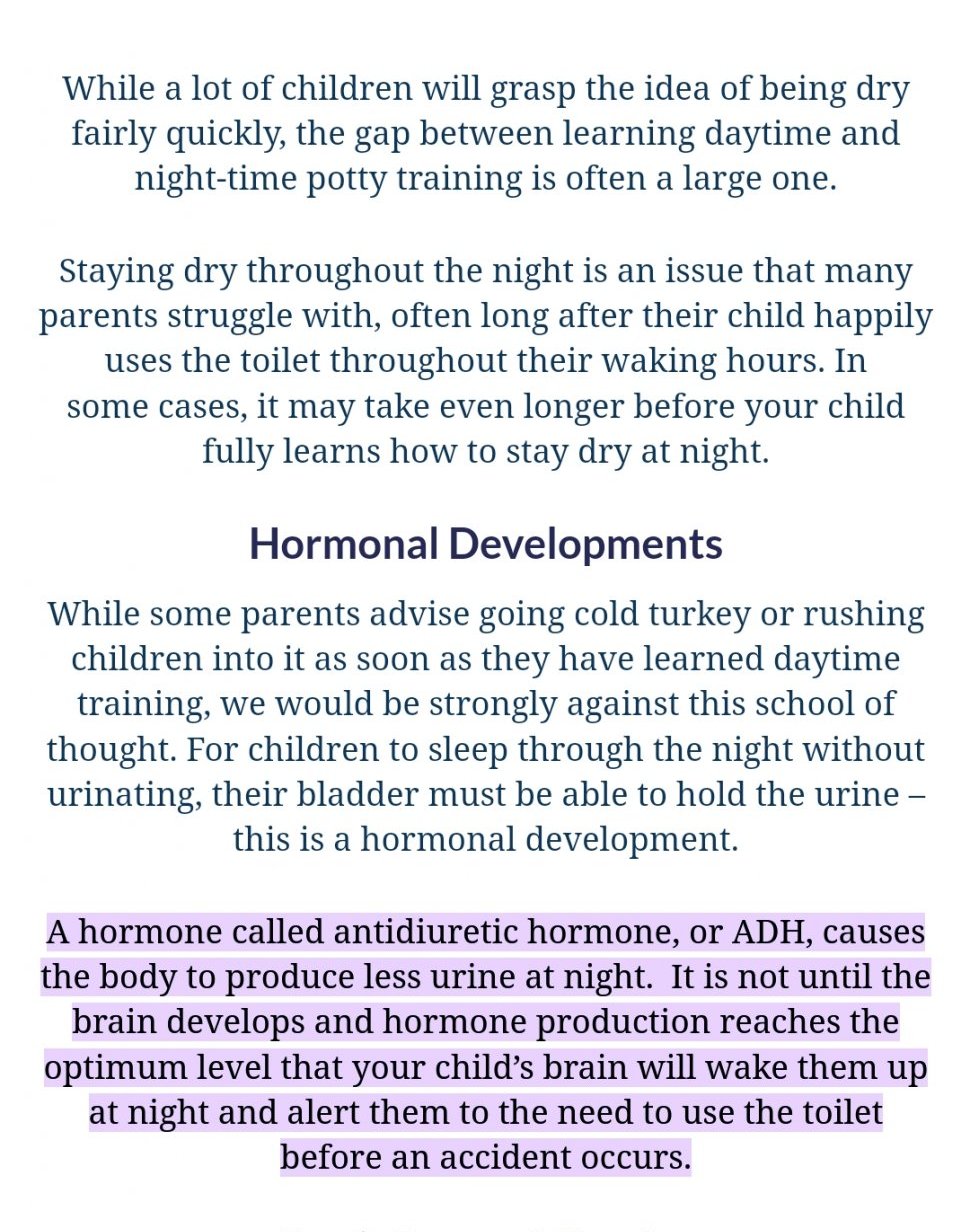 Ето тук има информация за хормонът, който е необходим през нощта. Слагам го, защото наблюдавам, че много майки не са чували за това и се ядосват и притесняват, че детето се напикава до късна възраст през нощта.