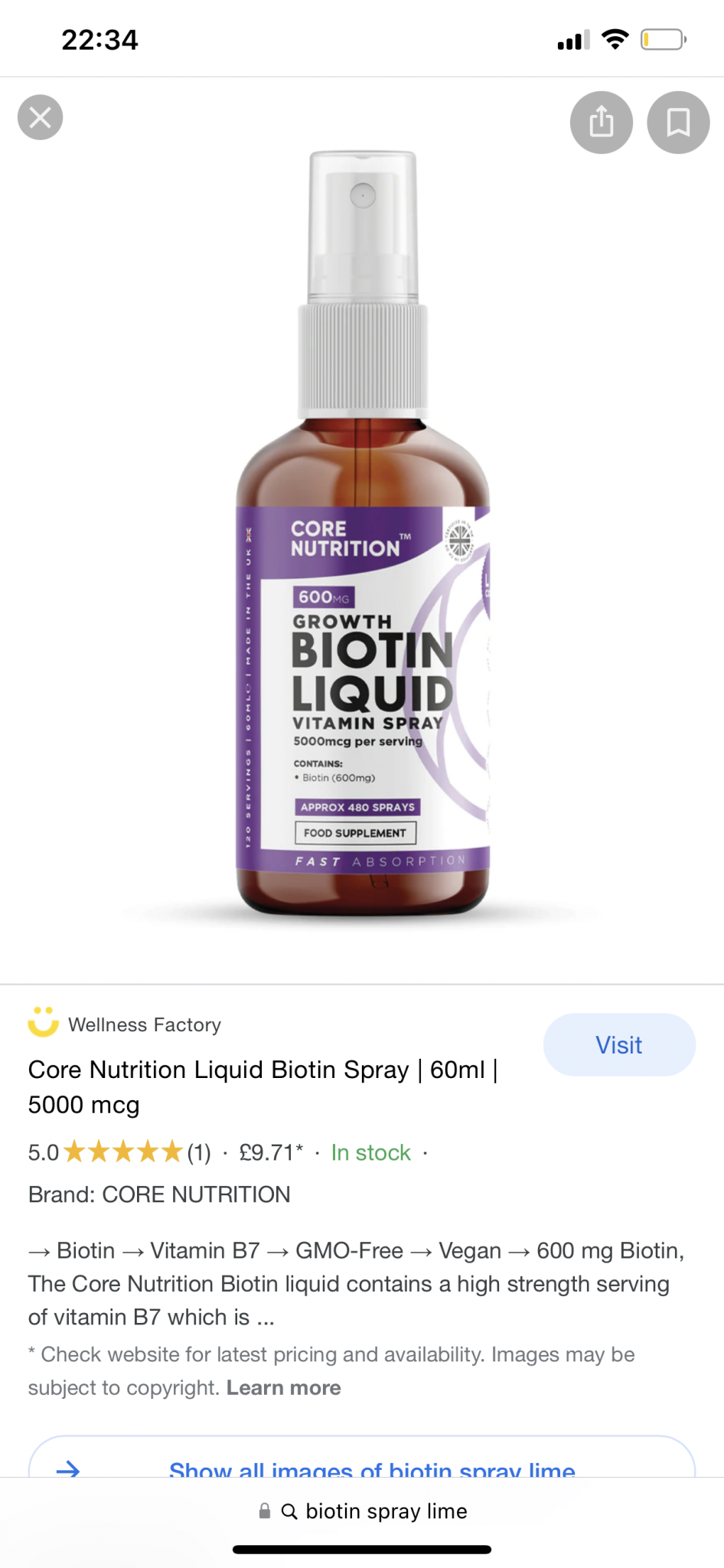Ще прикача снимка какъв биотин приемах. Уж много хубав, ефект никакъв. Аз не бях много редовна де, понякога забравях да го пръскам. Обаче като се замисля бях нон стоп с подкожни циреи, които не изчезваха със седмици. Всъщност те тези пъпки откакто съм забременяла не изчезнаха и сега се прибрахме с 2 седмици в България и лицето ми се изчисти.. май е от храната.