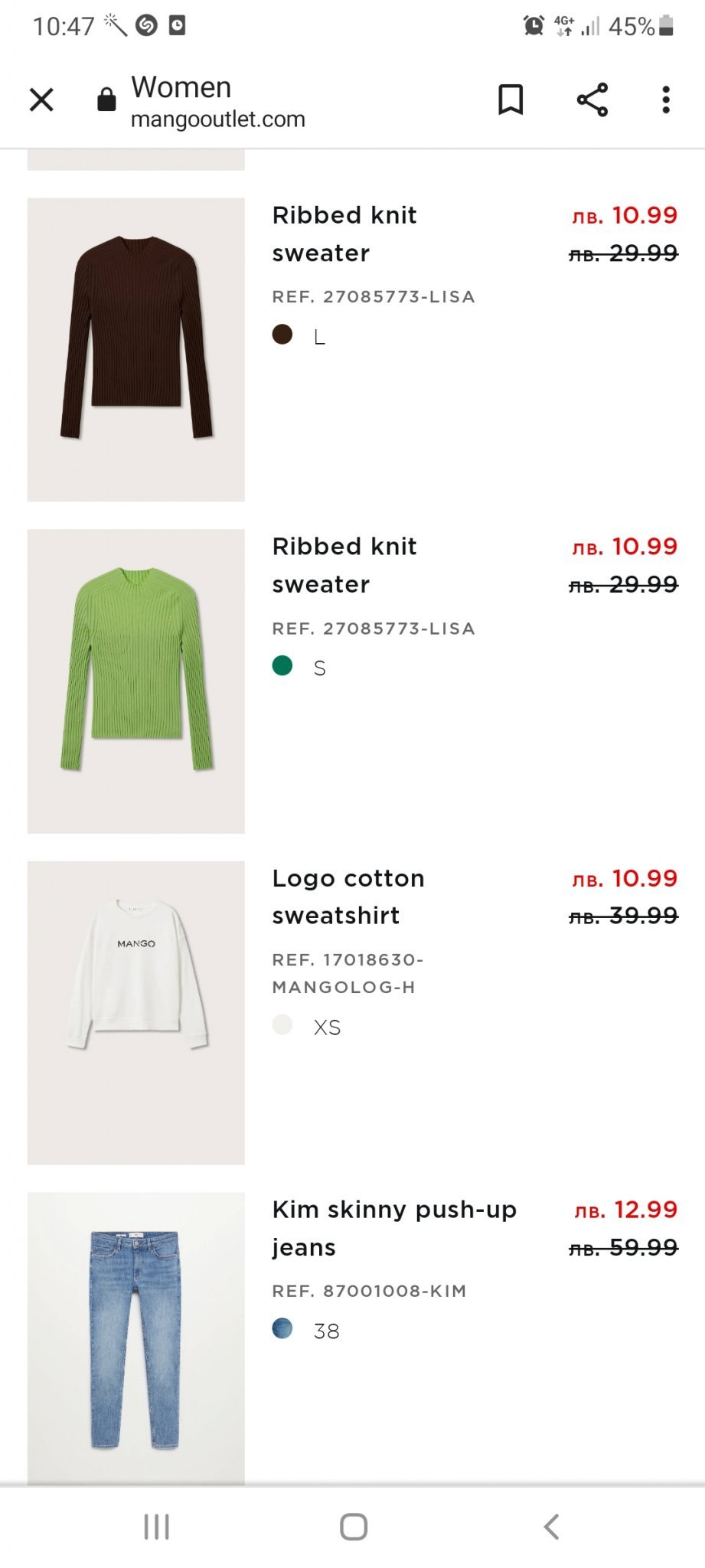 Аз пък по-ниски цени на пуловери и дънки не съм виждала скоро.Но.....зависи кой от какво има нужда.Аз съм доволна.С якета от Манго съм се запасила до края на живота си сигурно.