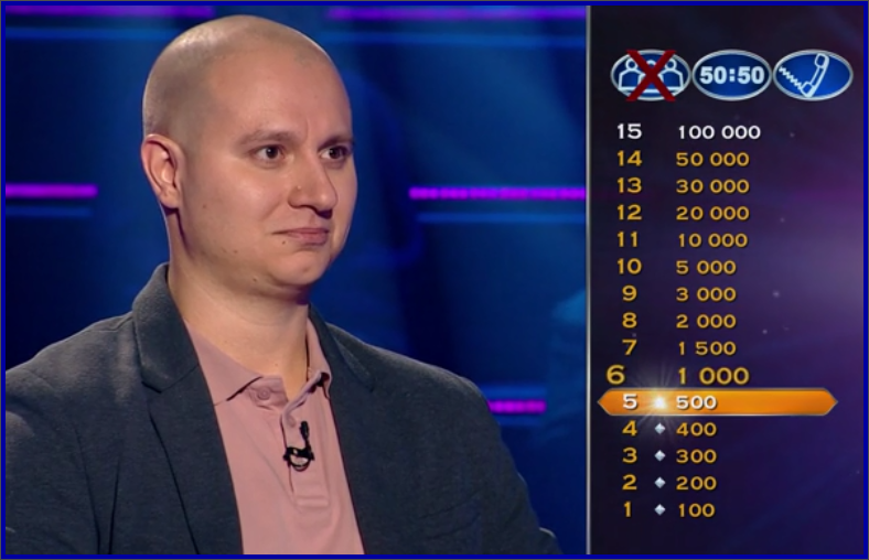 В предната тема някои от вас споменаха, че направо им се отщява от играта, май и на мен, това с въпросите до 500 лв си е някакво губене на време, повечето са някакви глупости и да не знаеш отговора, просто останалите 3 са невъзможни. Накрая вземе, че мине цялото предаване и има-няма общо 5 въпроса над 500 лв сме видели.