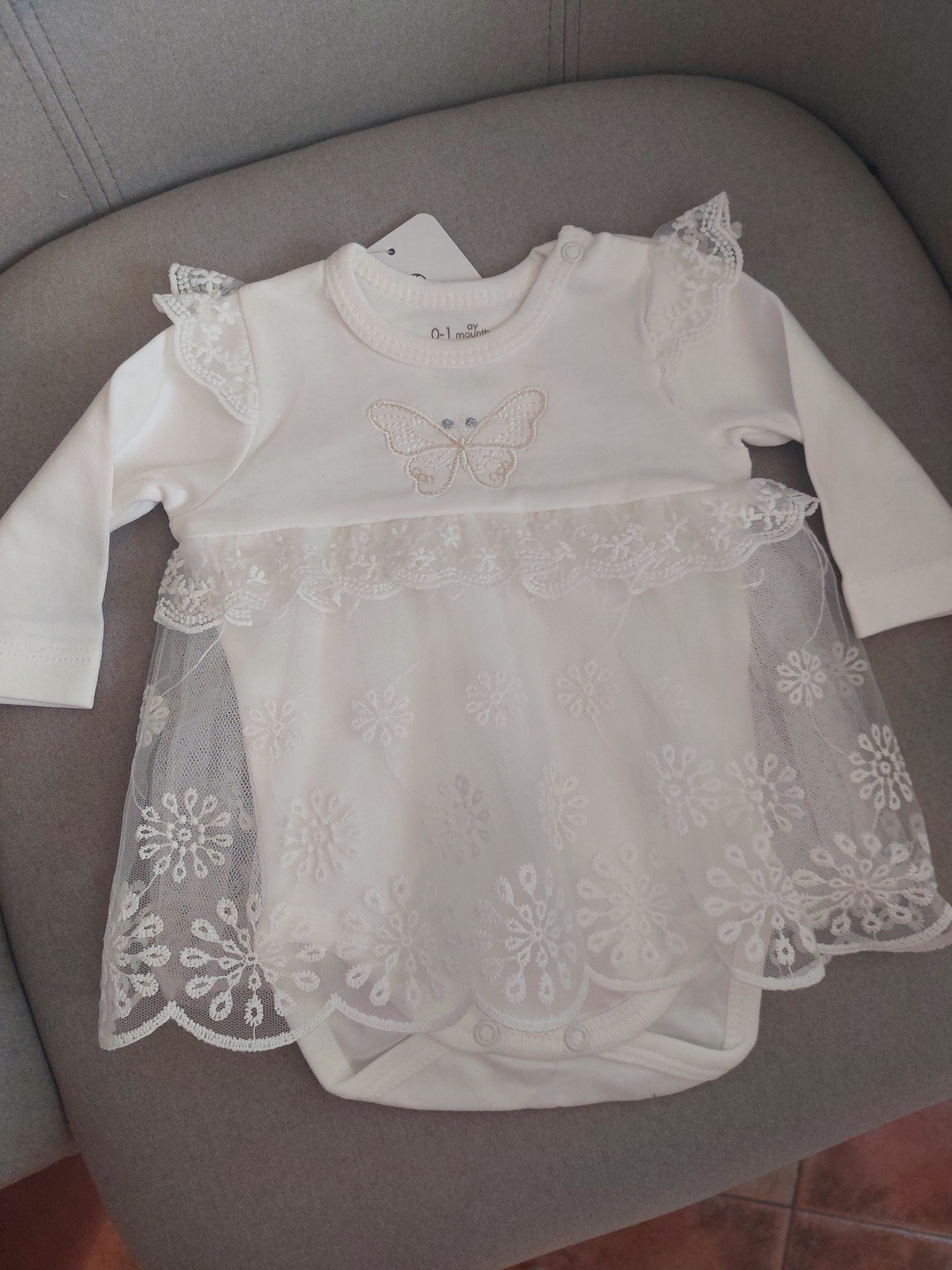Raya.3 Аз съм купила ето такова боди - рокля и върху бодито под тюлчето мисля да облека рипсено клинче ако изобщо намеря.Така няма да се мъчи с чорапогащи и 10 ката дрехи .Сайта е Carnival Kids - има още две три такива подобни рокли в розово и бяло .