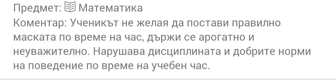 anitsa, благодаря, че спомена за съхранението на записите - ще включа такъв текст към искането си за достъп до тях. Вече ми е все тая как ще рефлектира това върху децата откъм държание от страна на учителите. Дано и те си кажат това, което споделиха с мен, без да ги е страх за позицията им. Днес една ми спомена, по-скоро "се изпусна", че въпросната "учителка" по математика тормози и тях, нали е зам.директор. Вярвам, че * ще се намеси и ще стане така, както е най-добре за децата. Смятам писмено още сега да уведомя и класната в Школо за искането си за достъп до записите. Сто пъти разпитвах децата, забележката е отправена персонално към сина ми, с остър тон. След изгонването му друго дете е било любезно помолено да си сложи маската. Дори и да са без звук камерите, ще се види за какво иде реч.