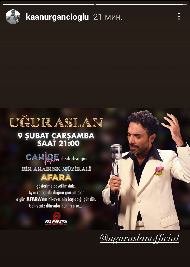 Я, Уур имал рожден ден след няколко дни, на 9ти.❤️ На същата дата ще има и неговият спектакъл Афара .