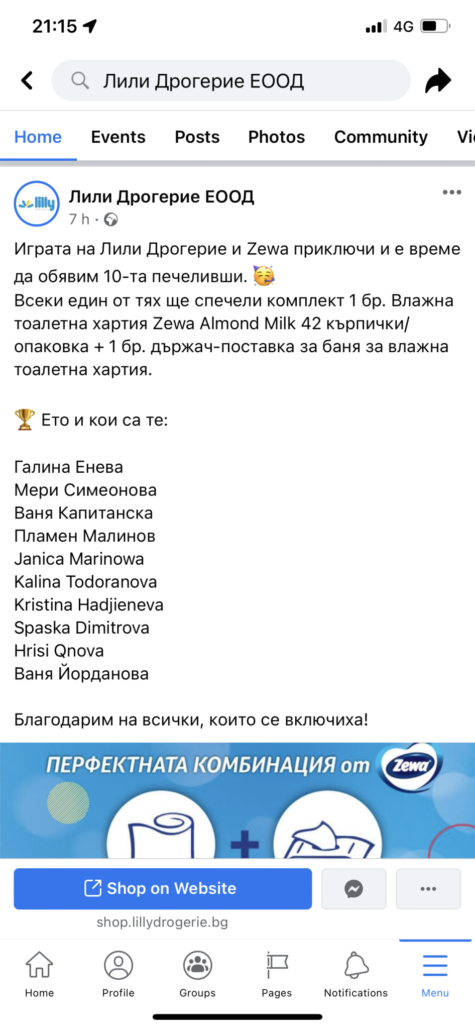 Aз спечелих вчера душ гел от Либрес във Фантастико.