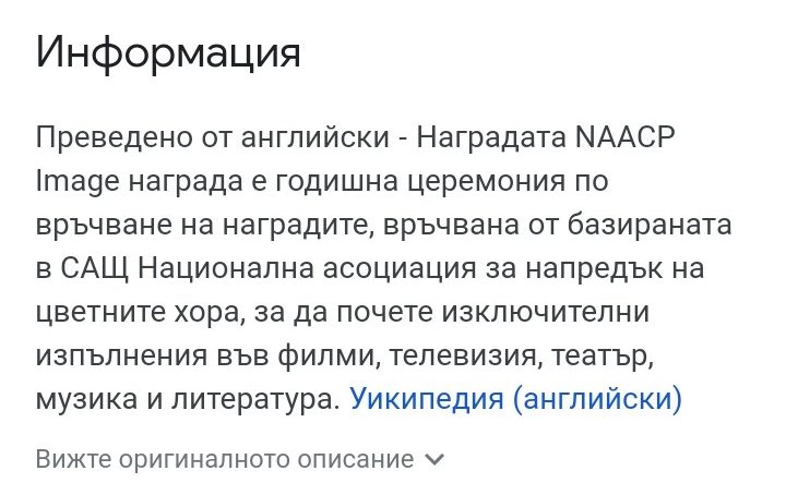 Това са награди за шоубизнеса: https://ew.com/awards/will-smith-cicely-tyson-among-first-naacp- … ge-award-winners/
