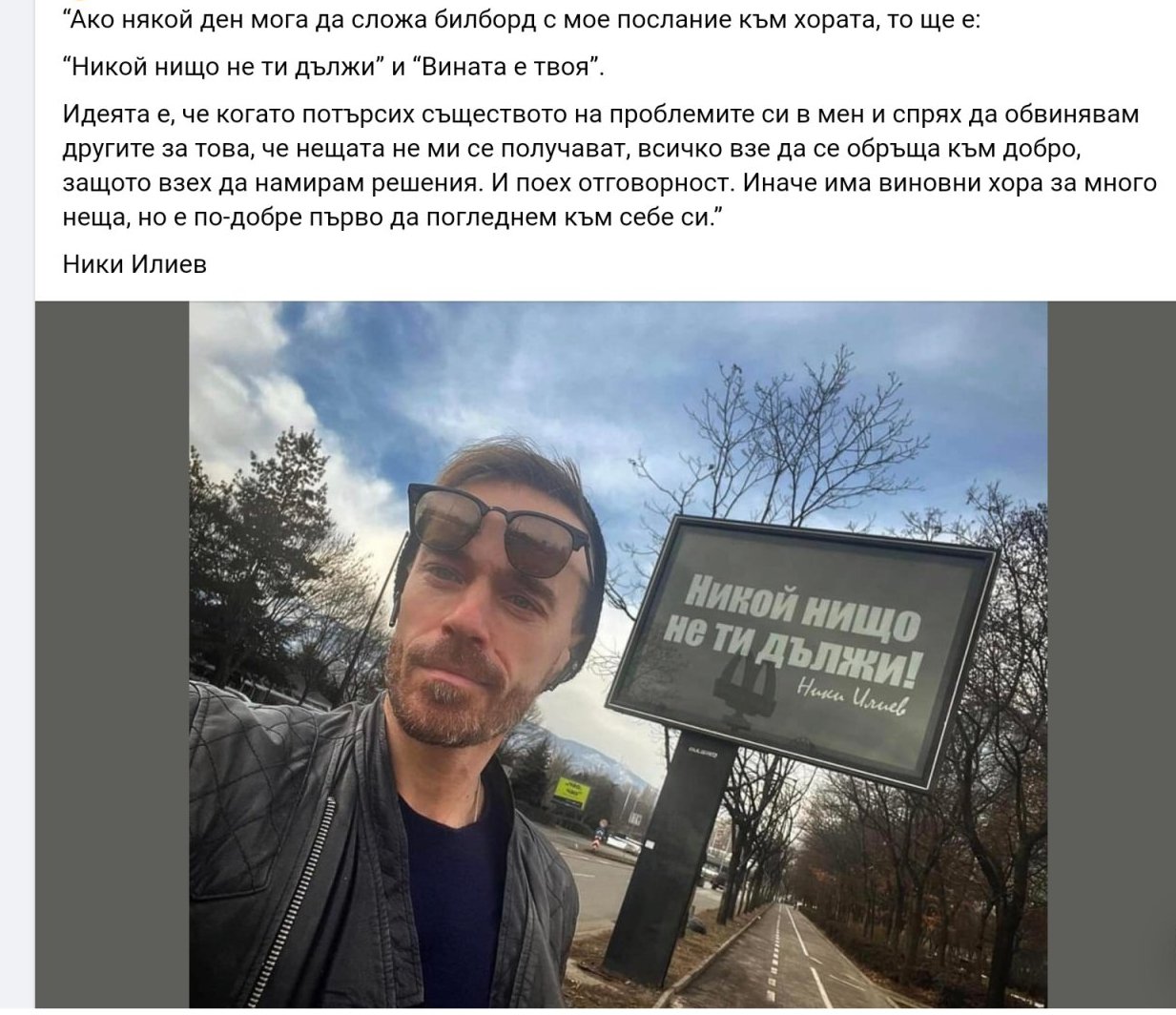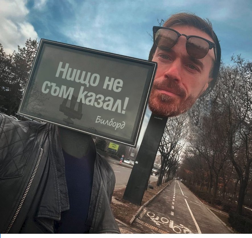 Нашляпал е разни билборди с тъпи цитати из Софията и се снима пред тях. Предполагам е част от пр кампанията за новия му филм.