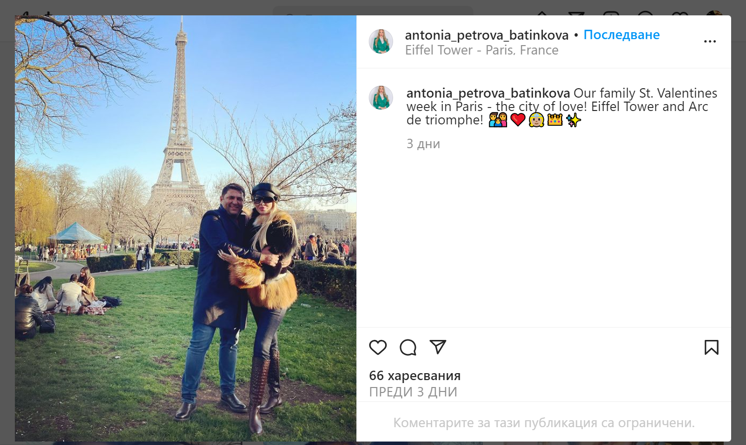 Що за двойка са тези Тоцини. МъжО й все повече ми пада в очите. Представям си моят как ме снима с телефона, че съм си купила поредната eднаква чанта и ще ми се възхищава. На "любовните" снимки от Париж я е прегърнал като малка коала голямо дърво.