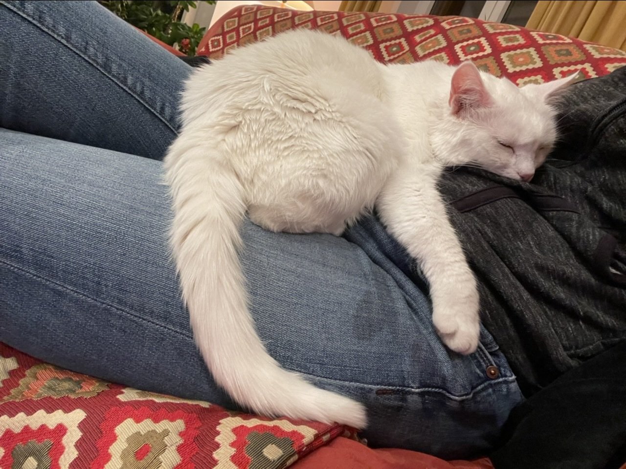 ) Той слезе, пак го качих, казах му че е най-хубавия котарак. Следях го след това къде ходи, какво прави. Веднъж я ползва. Заспали сме с него, докато гледаме телевизия. Сутринта като станах беше свършил голямата работа в тоалетната. Не усещам да е ходил другаде. Но и предния път не усетих преди да го видя да рови във възглавниците и да открия съкровищата