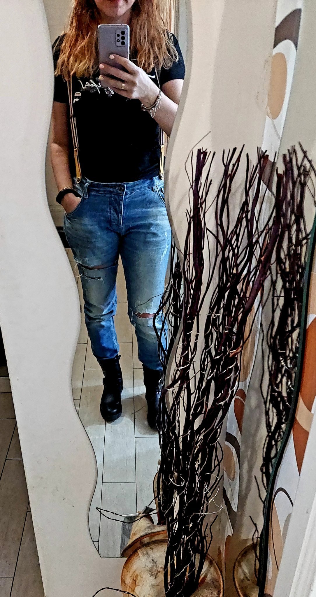 PS Забележете, колко са широки ботушите и при нея - просто това е стила Simple Smile Но на слаб крак, разбира се, стои очевадно.
