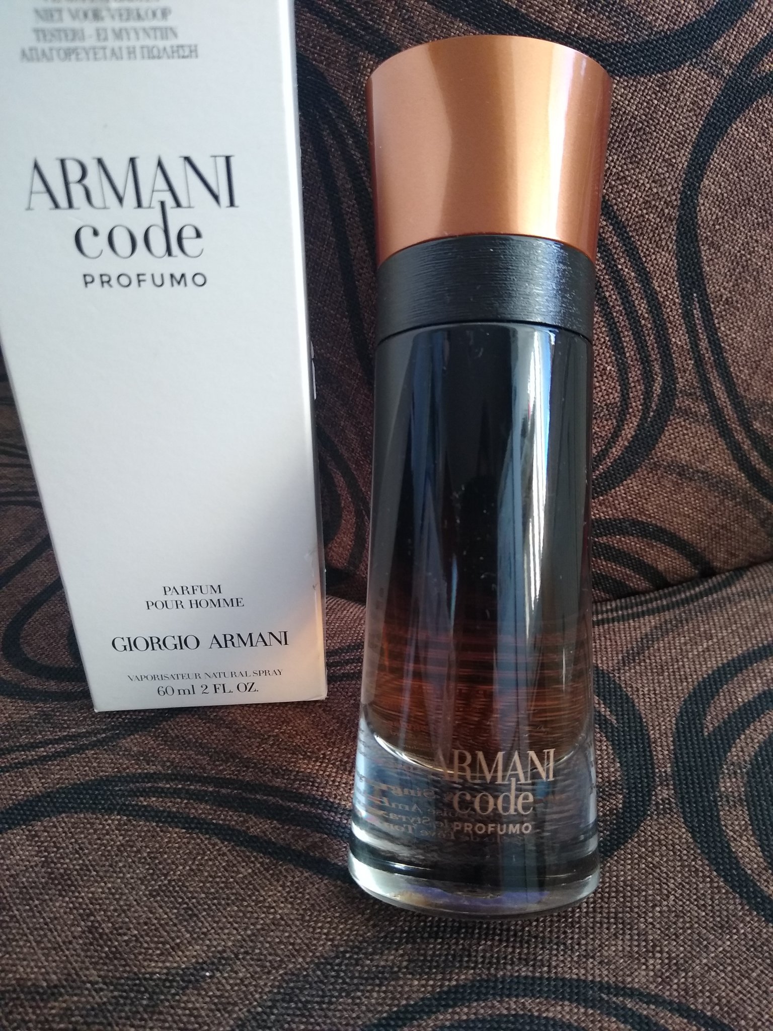 Не на последно място придобивка, която взех за половинката - влязох в Гиза, мирисах целия стелаж от мъжките парфюми и този (и Интерлюд имитацията на Амуаж, но той е малко по-сложен за ежедневна употреба) се открои най-много на първо време - Кодо Профо или Armani Code Profumo - дори не го бях чувала този фланкър, а ме изненада приятно. Много сладък и хубав, бих го носила и аз, става и за унисекс ако сте фен на "мъжки тип парфюми". Има в състава си кардамон, зелена ябълка, мандарина, индийско орехче, лавандула, тонка, кожа, портокалов цвят - топъл аромат, в драйдауна си ми ухае на бонбони рафаело с хрупкава коричка, кокосов крем и бадеми вътре, не знам защо, обаче нотката на кожа прави нещата по-мъжки. Приятелка каза, че ѝ мирише на сладкарница, но в добрия смисъл - не сладко и лепкаво, тонката и портокаловия цвят си казват думата, а индийското орехче го прави топъл. Наистина страхотен парфюм, а най-хубавото е, че вчера бях в Дъглас и случайно открих оригинала - пръснах ги едното и другото и... Няма разлика, ама абсолютно не откривам, бих казала, че се препокрива на 100%. Чета и много позитивни ревюта за него в интернет, така че ако ви се стреля на сляпо - поръчвайте от Гиза ако сте фен на сладки ванилови аромати, нищо анималистично няма за мен въпреки писаното във фрагрантика.