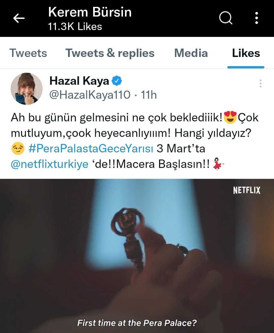 Иначе е бил активен в Туитър днес. Харесал е пост за нов филм по Нетфликс с Хазал Кая.