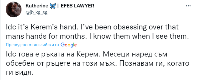 Много е хубава ръката на снимката, прилича на тази на Керем , но като разгледах профила на този Джан и той има хубави ръце, така че вероятно си е неговата. Joy