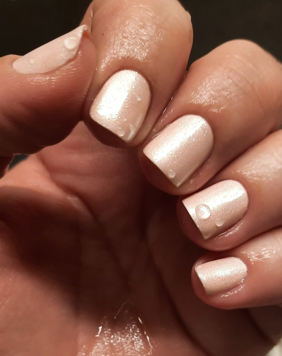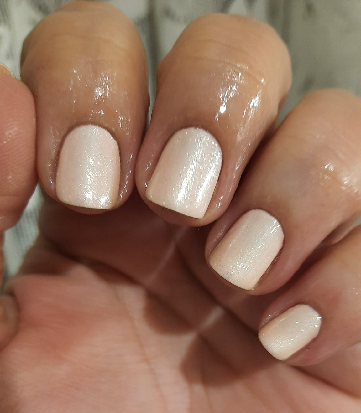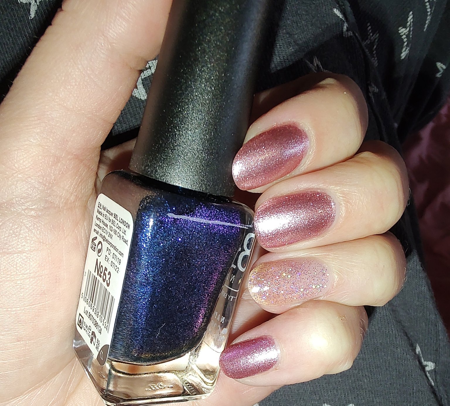 Получи се нещо средно между розовата Аура със златист шимър и ефект Unicorn, обаче няма шанс да го хвана на снимка, телефонът автоматично прави ръцете ми по-тъмни, а лакът- като бял...🤷‍♀️