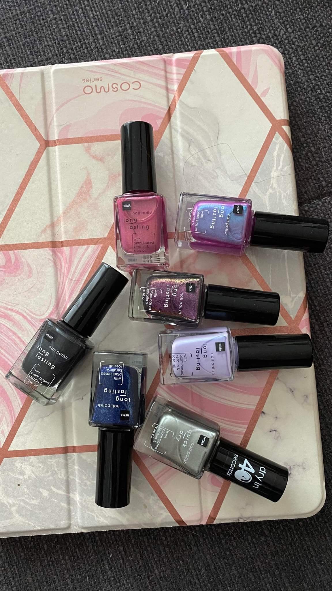 Получих подарък тези и нямам търпение да ги пробвам всичките, два от тях имах и са ми любимите лакове. Четката е страхотна, нас два пласта са съвършени и съхнат бързо.