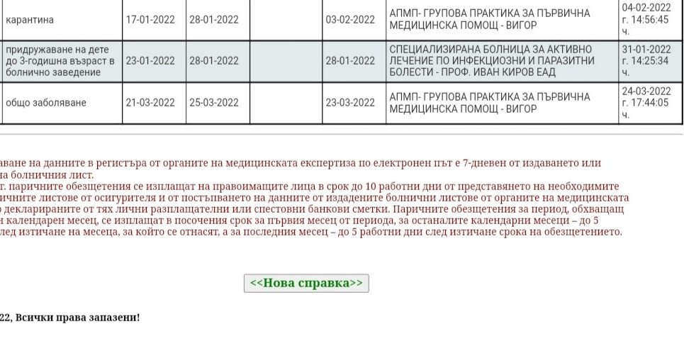 Декларацията съм предала на работодателя на 02.12.2021, като започнах работа от 1.12. Последните два болнични съответно на 31.01.2022 и 28.03.2022л Хайде да кажем, че този от март е доста пресен. Но другия и декларацията вече трябваше да са придвижени...