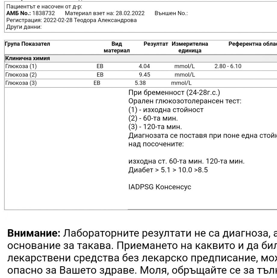 Момичета пак съм аз, по препоръка на АГ направих обременяване с глюкоза, 27 г.с.