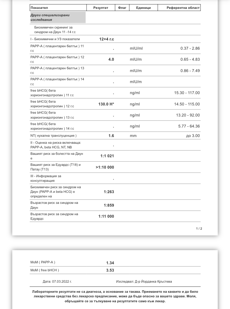 PAPP-A е повече към горна граница, а не знам на какво отговаря?