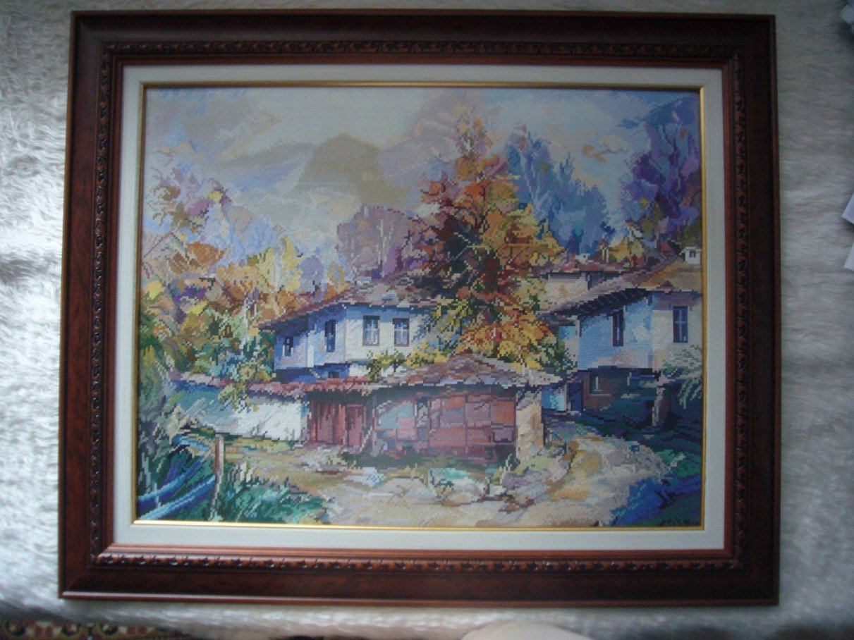 Елиана шила съм "Жеравна" на Чернева преди много години /2007 мисля че беше/. Тогава дори ходих в тях на гости за да си го взема. Тя не признаваше кръстче и аз го ших с бод 1:4. Това ми е последния ушит с този бод, сега бих го направила с кръстче, но тогава го видях у тях ушит, бях силно впечатлена и исках да постигна същия ефект. Но тя беше предвидила и едно шито паспарту, което така и не намерих сили да направя.