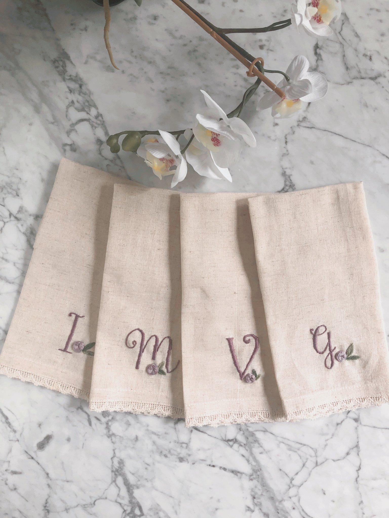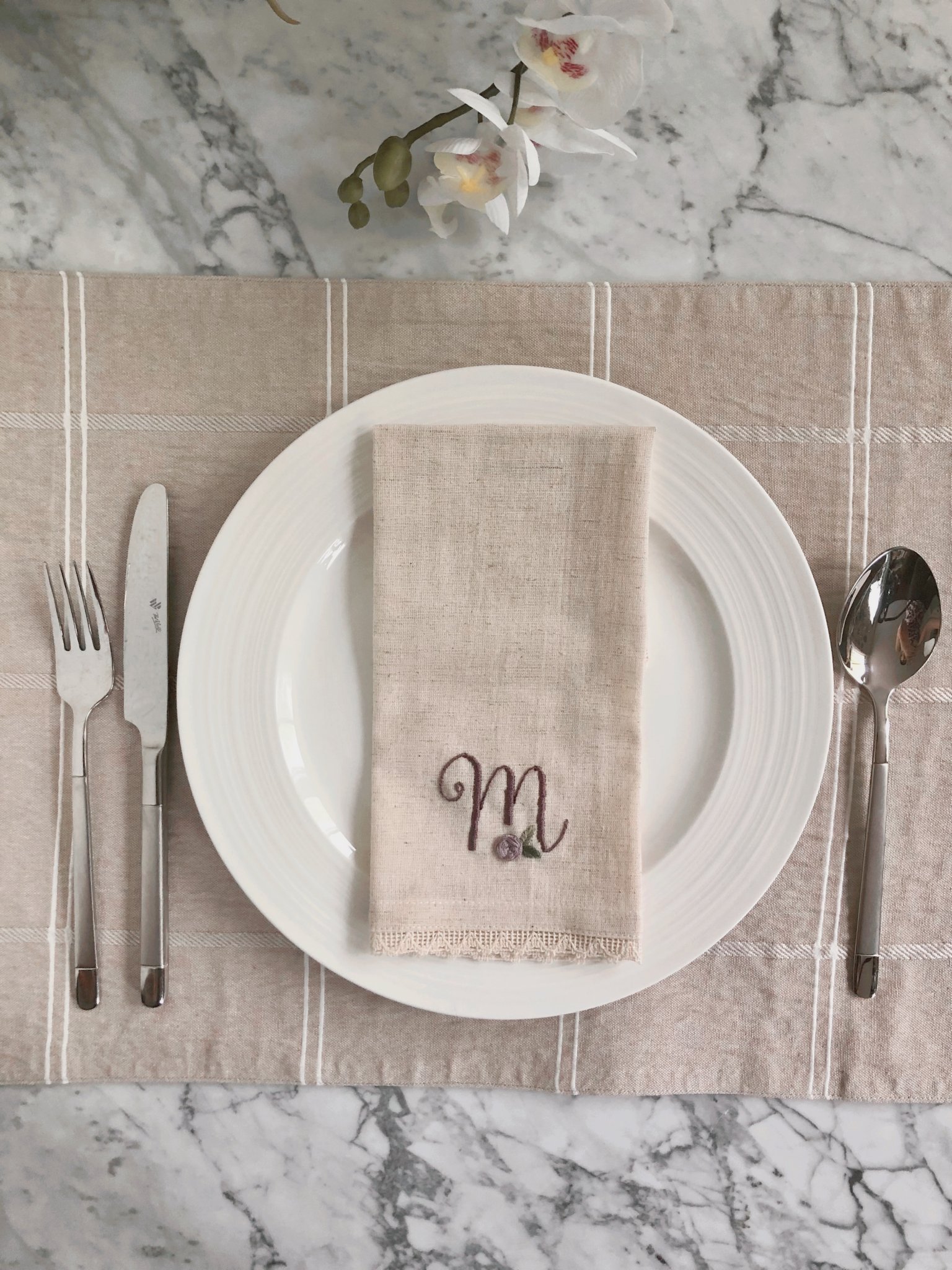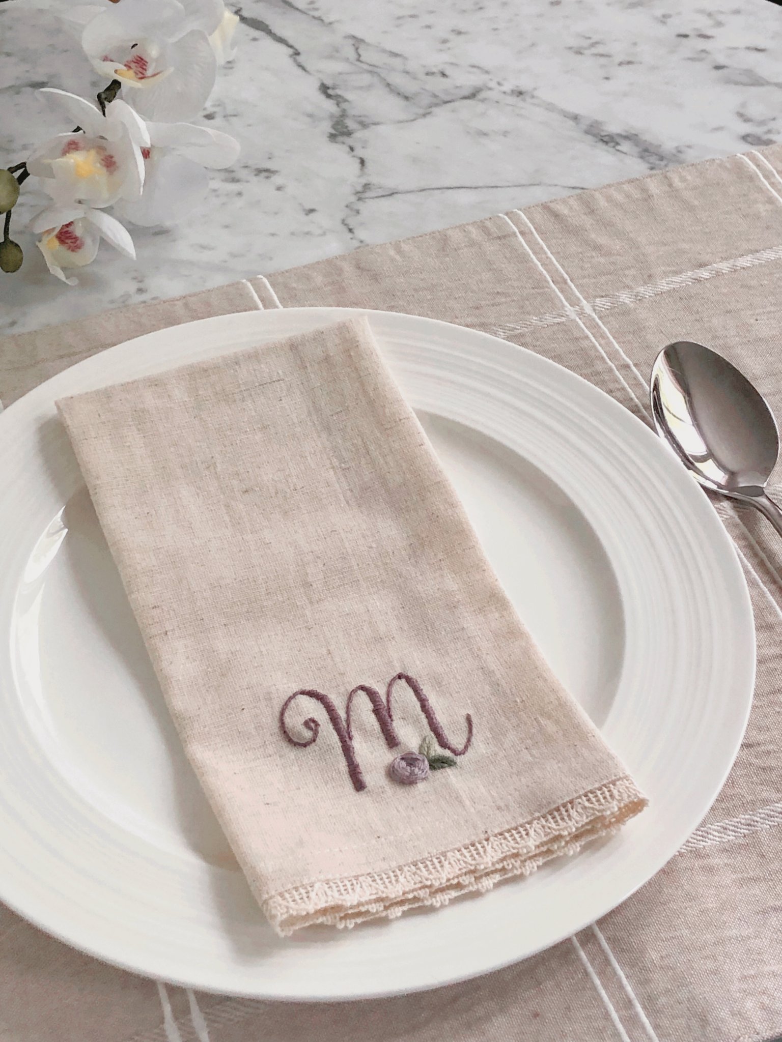Аз реших да декорирам ленени салфетки с бродерия - нещо практично, което ще се ползва. Това са инициалите на нашето семейство. Имам още 8 салфетки, на тях ще избродирам цветя и ще ги ползваме за гости Simple Smile