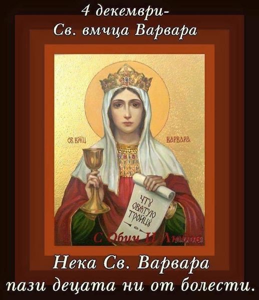 Днес е Св. Варвара - честит празник, които празнуват днес. Нека Св. Варвара пази децата от болести Hands Pray