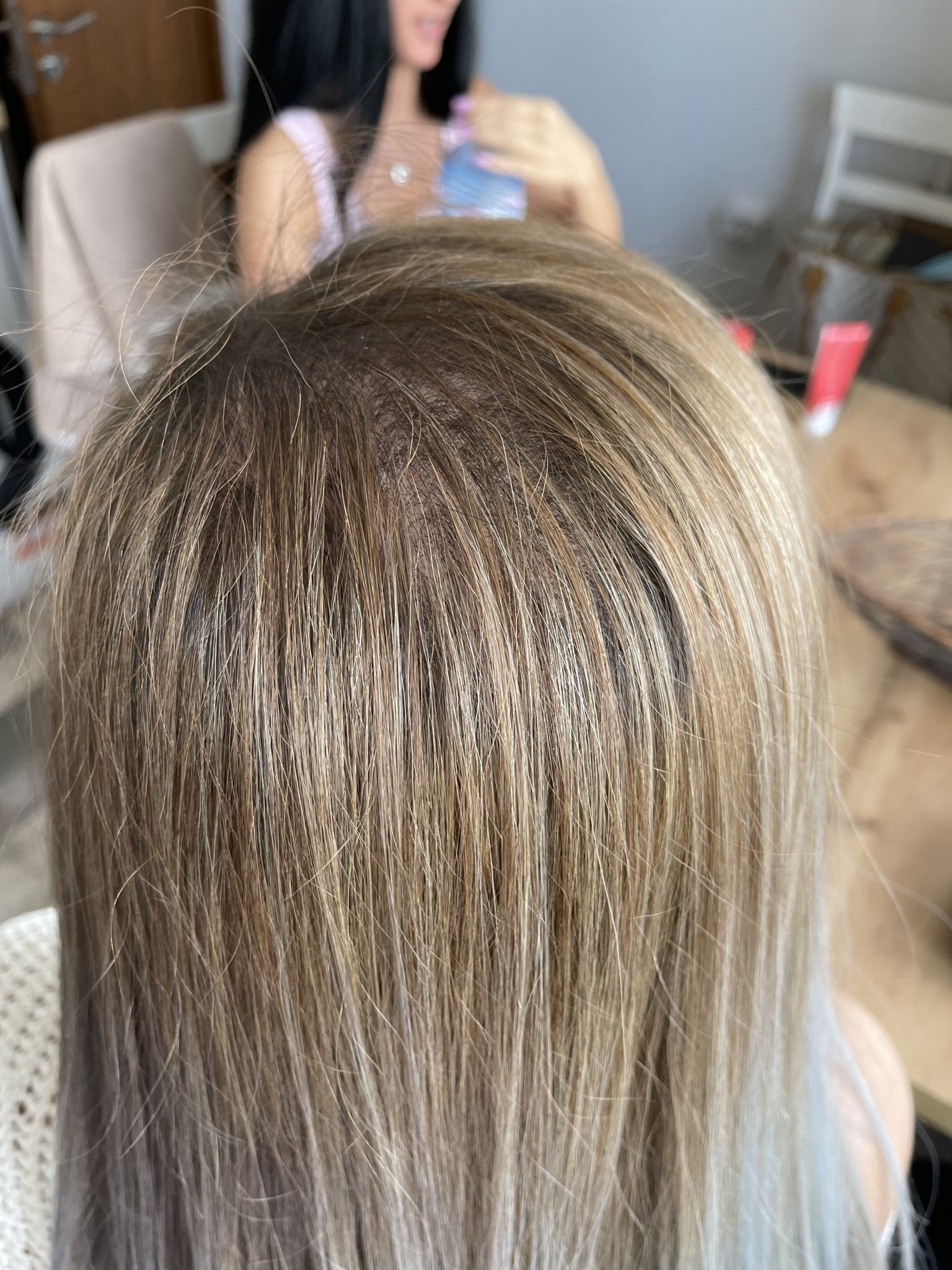Нооо ако раЗгледаме по внимателно - идеята беше изсветляване с тънки кичури издухвани със сешоар, за да стане цялостно по светла