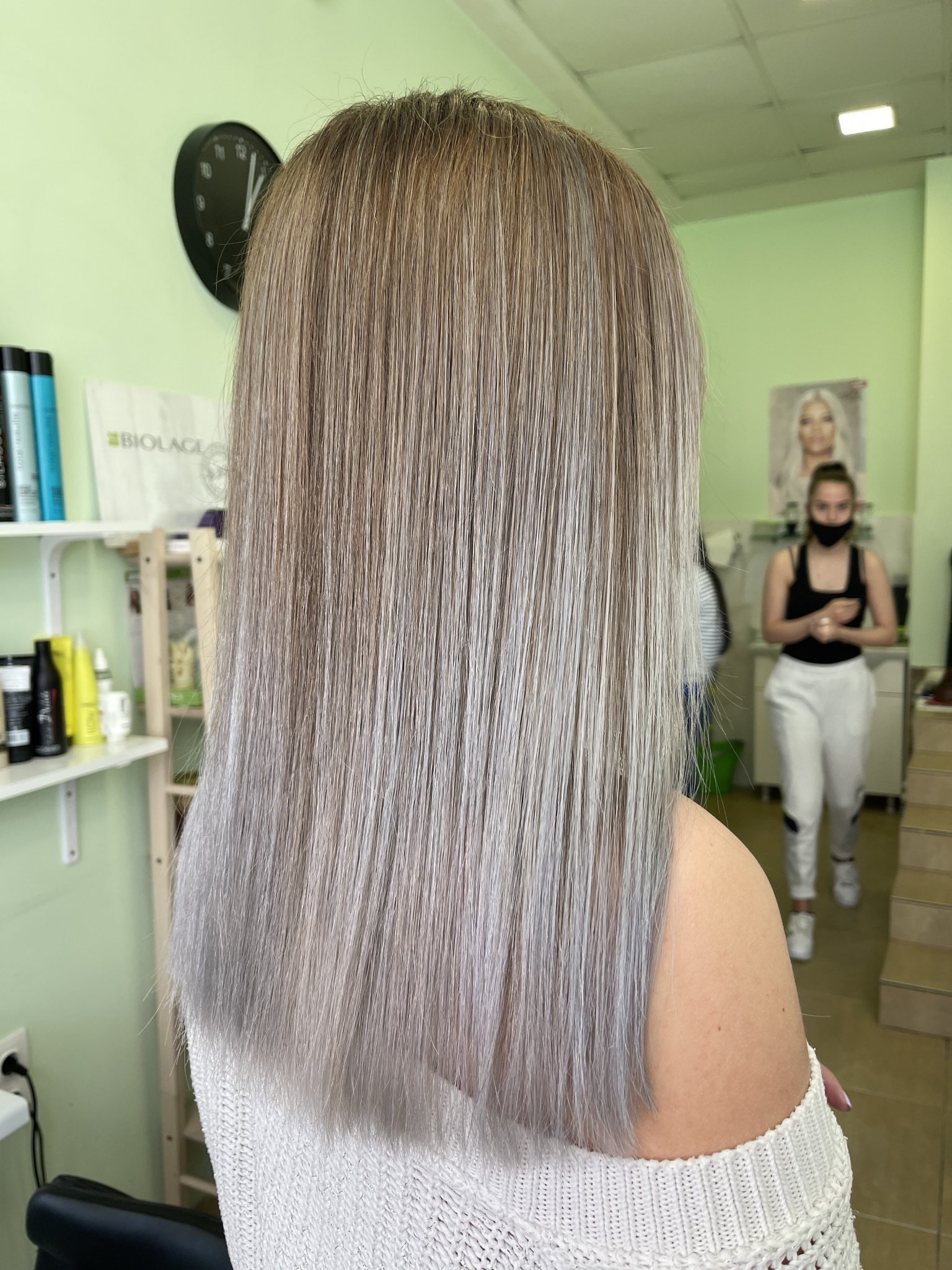 Melisande аз също съм  много светла ,но от както подържам по-перлен и дори по-златист цвят много си харесвам цвета и повече ми отива на кожата .Ако я изсветли фризьор ,после можеш всякакъв нюанс да подържаш.Според мен не е достатъчно изсветлена косата . Аз също съм с упорит червен пигмент,но пепелно не харесвам на моята кожа.