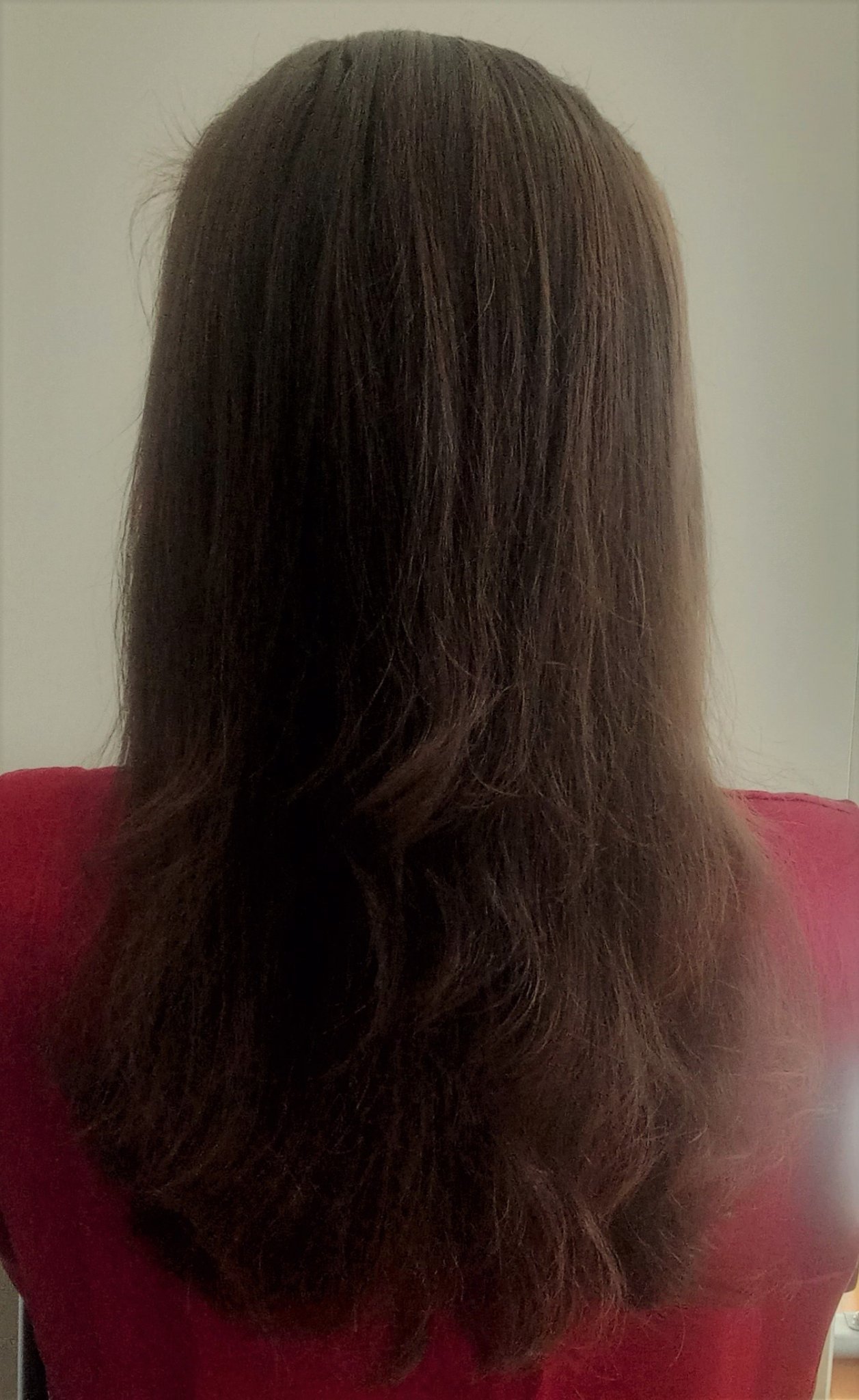 По началните въпроси не мога да дам мнение, защото не се боядисвам и нямам конкретен протокол, още съм на проба-грешка. Но ще ви зарадвам с две снимки "преди" и "след" участието ми в темата. Минаха прословутите шест месеца, които си бях дала за поправки (косопад след корона и след второ евентуално боледуване загуба на блясък и поява на фриз).