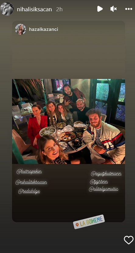 Радвам се за Боран - щом на него му харесва, Онче, ние трябва да приемаме решенията му. А щом е и с Нихал Wink, съм още по - доволна. Шюкран Овалъ му писала, че много ѝ липсва, Левент Джан също се е обадил под снимките от днес.