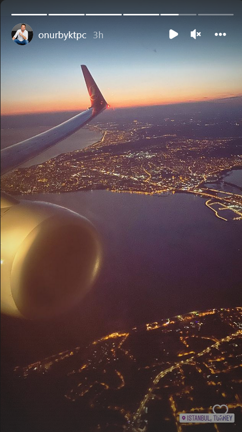 Онур Б. се върна от Измир в Истанбул снощи с красивия залез над града на Босфора, заснет от самолета.