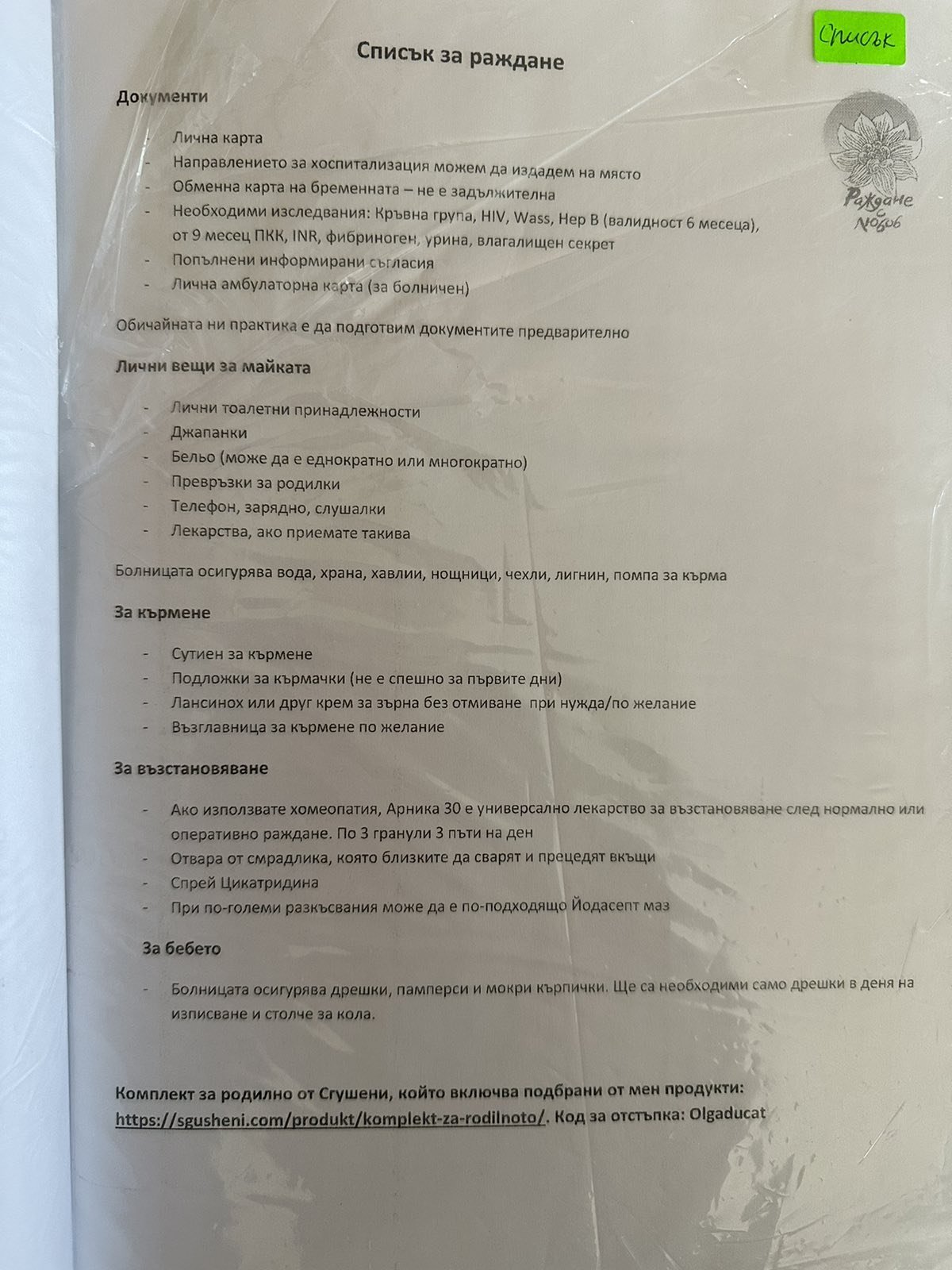 Момичета, споделям актуален списък за родилното, изпратен ми лично от Олга