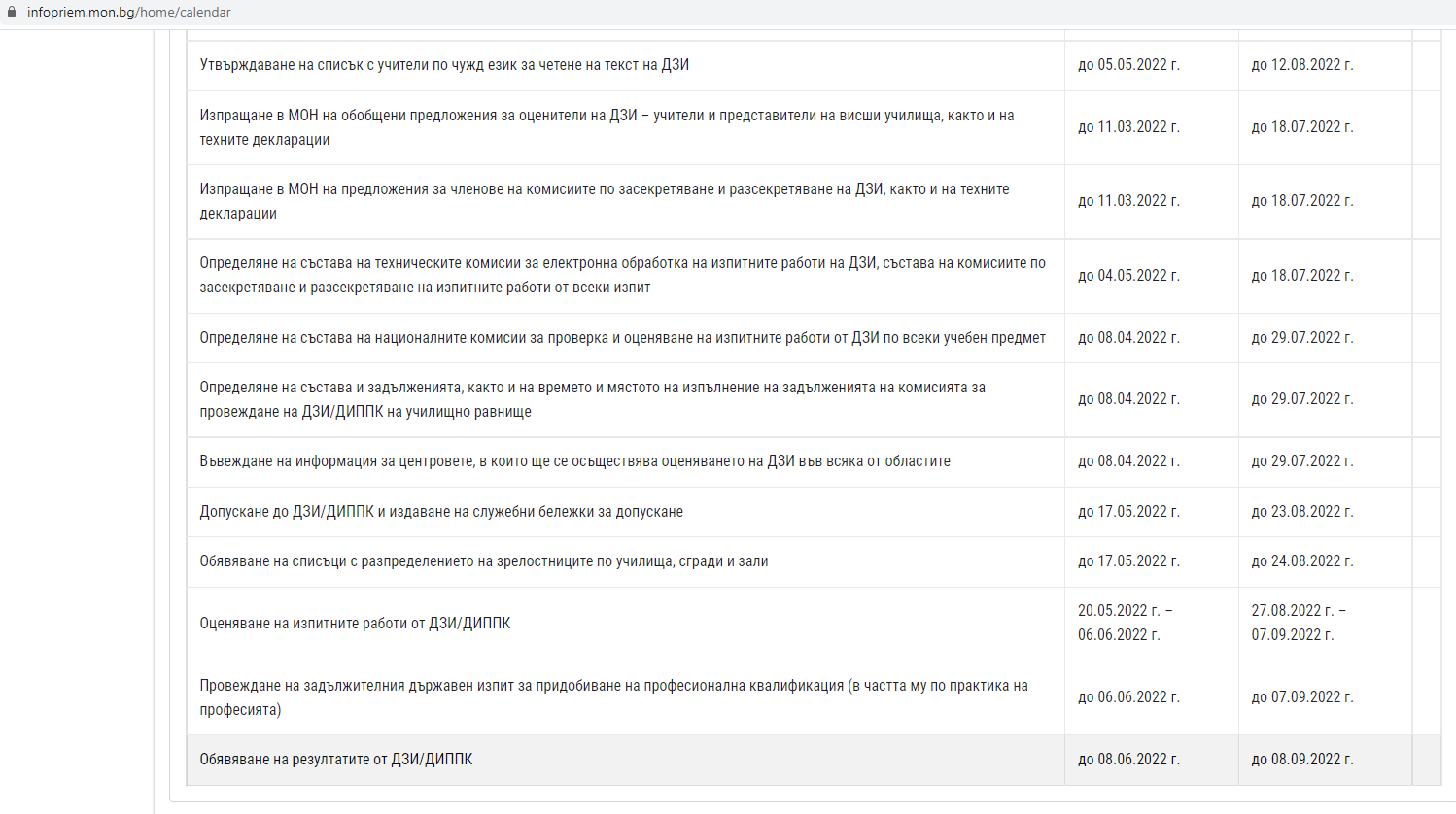 От сайта на МОН, това е календара...