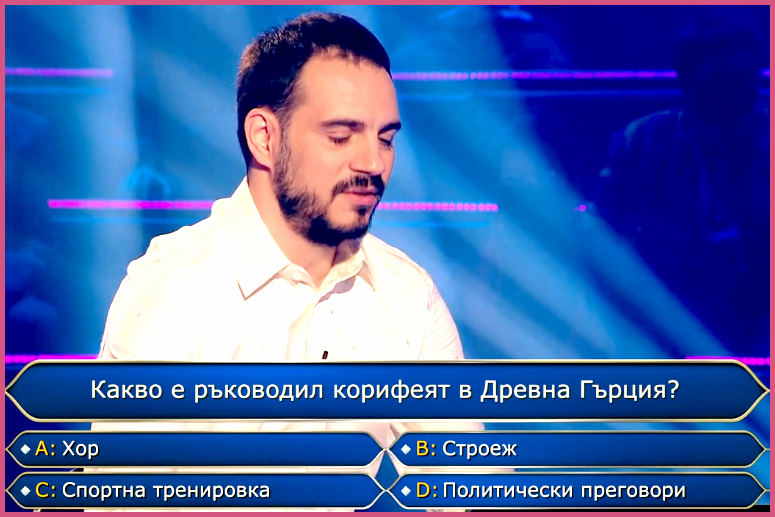 Е момчето с гръцкия въпрос направо ме зашемети с разсъждения. Хубаво не знае отговора, ама да приказва такива глупости...