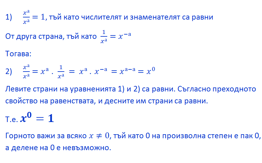 Според това обяснение в произволната степен влиза и единицата. Това имах предвид.