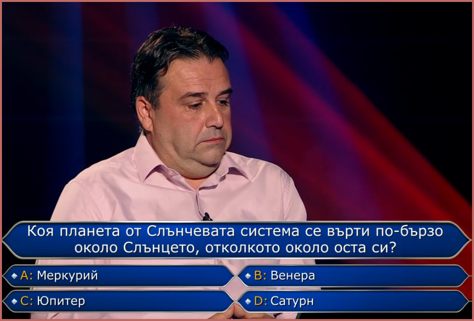 Но е имало и въпроси, които просто не стават за приятел. Твърде дълги, описателни, не дават възможност за редуциране до една или две думи. Когато не знаеш отговора и е последният ти останал жокер, ползваш го, пък каквото излезе. Странно ми е обаче, когато при голям и труден въпрос и 2 останали жокера, обикновено 50/50 и приятел, не ползват първо 50/50, а се хвърлят веднага на телефонния. И обикновено се издънват.