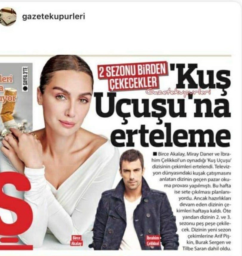 "Снимките на сериала"Птичи полет"с участието на Бирдже Акалай ,Мирай Данер и Ибрахим Челиккол са отложени.Читателската репетиция на поредицата,която разказва за пропастта между поколенията в света,се проведе миналата неделя.Беше планирано да се отиде на снимачната площадка тази седмица.Снимките за сериала обаче остават за другата седмица,като подготовката продължава.От друга страна,2 и 3 сезон на сериала ще бъдат заснети последователно.Ариф Пискин,Бурак Серген и Тилбе Саран участват в снимките на новия сезон."