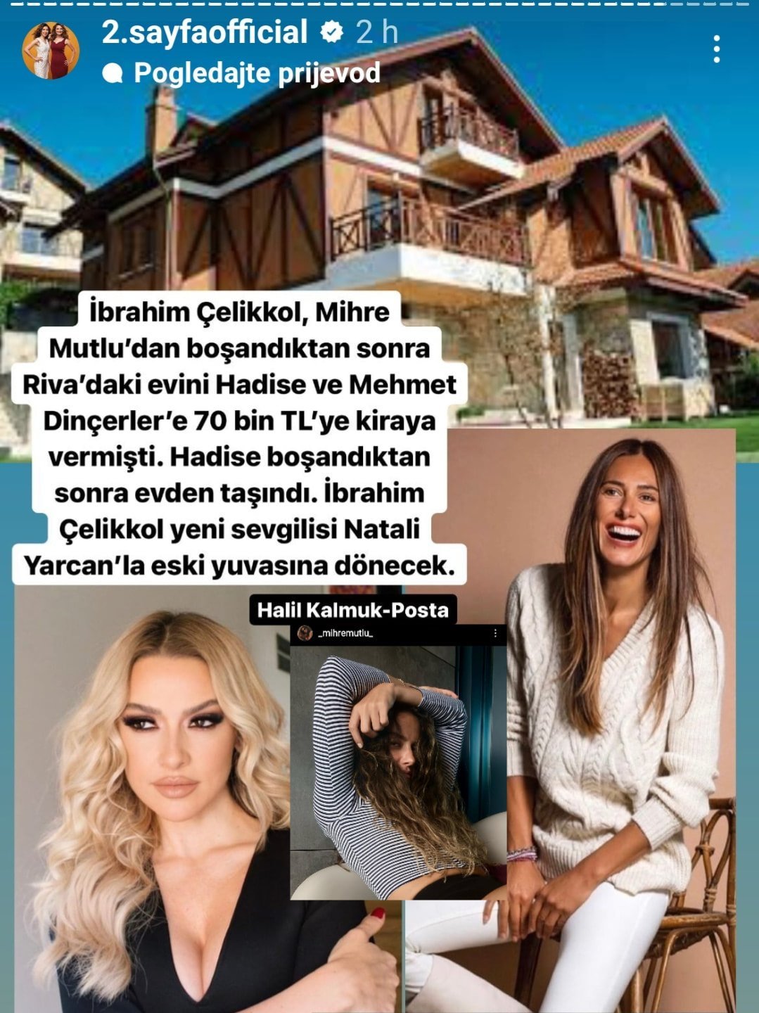 "След развода си с Михре Мутлу,Ибрахим Челиккол даде под наем къщата си в Рива на Хатидже Динчелер за 70 хиляди лири.Хатидже се разведе и изнесе от къщата.Ибрахим Челиккол ще се върне в стария си дом с новата си приятелка Натали Ярджан"
