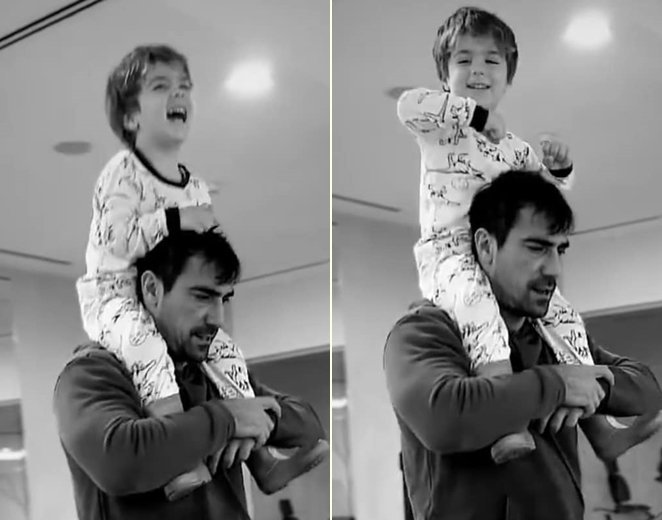Лицето на този щастлив малък Али с татко му... Това е толкова безценно. Това е много любов 💕