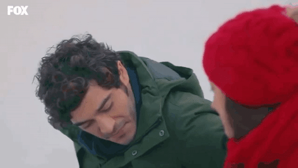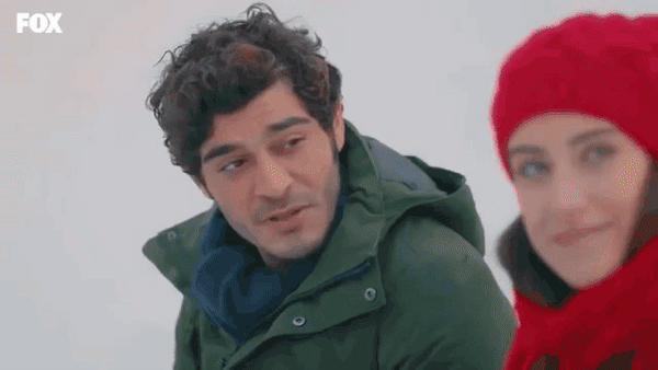 Може да донеса тогава някое и друго гифче. НИ не го изгледах, но в онази сцена, която съм накълцала са много сладки Бурак и Хазал. Как ми е минала пред очите, не знам, но в снега и тя с червена шапка май - харесали са ми и тогава, и сега Heart Eyes