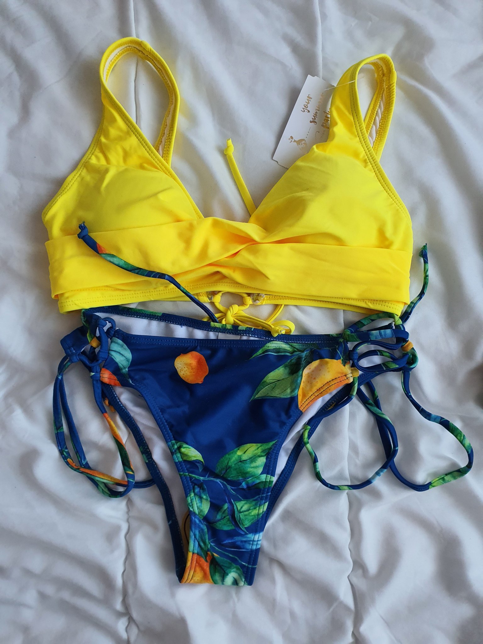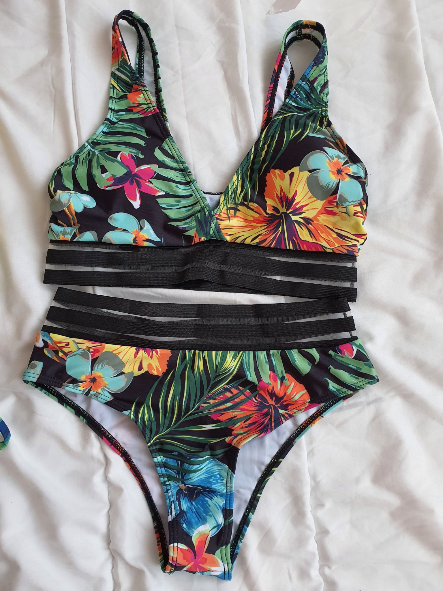 Банските са в мен и смея да кажа, че са отлични като цветове и кройка. Нямат висящи конци или изкривени шевове. Да, с меки подплънки са, които могат да се махат. Като размер на бюста съм 75С и си взех S размер. Горнищата са на ръба, по специално в чашката,но пък долната част са ми идеални, едва ли ще могат да се вземат различни размери от горна и долна част. Целият бански ми е малко широк в торса, но не е болка за умиране.