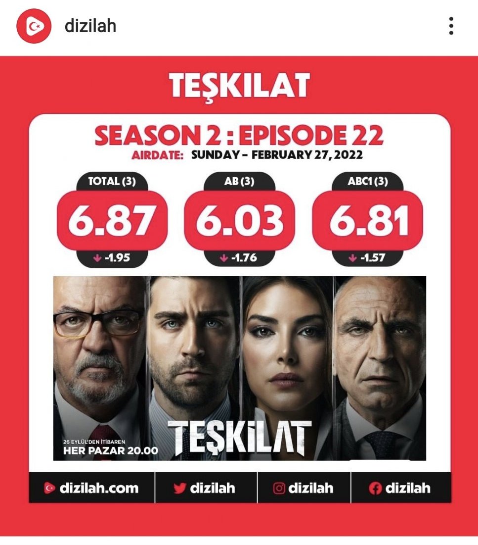 Много е паднал, дори аз не очаквах толкова.... освен мача и войната имало и нещо mirac kandili и според доста зареди него е това рязко падане. Силно се надявам другата седмица да се оправи. Сцената с Мете, когато им каза, че нямат личен живот и всичко е за родината, сякаш ни намекват на нас феновете, че чувства няма да има, да не се надяваме напразно...поне на мен така ми се стори.