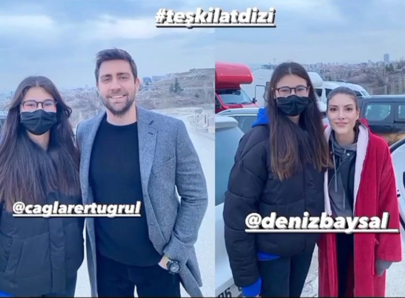 Езги (Джерен) е пуснала снимки от сета, с Йълдъръм, в Анкара. А навън вали сняг.