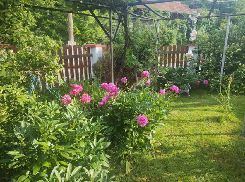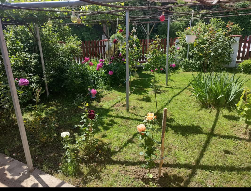 Това е поредния двор, посадила дъм над 30 вида рози, храсти, жасмини, люляци и божури...и много други
