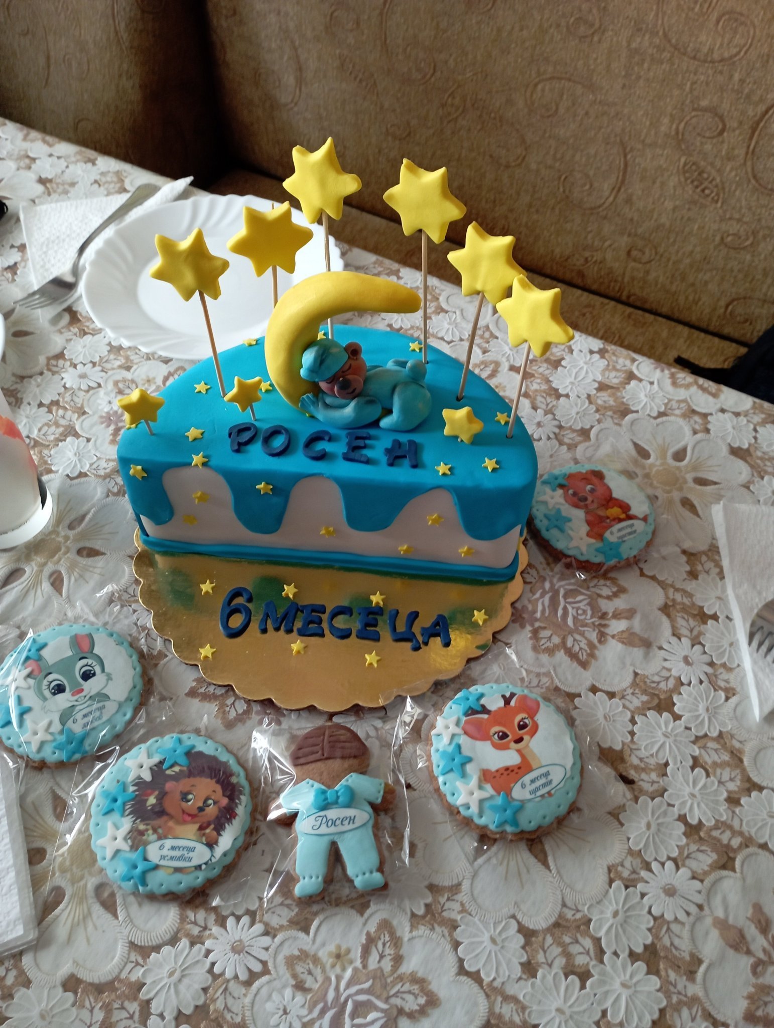 И половинка торта му правих на човечето на 1.04.Според ММ голяма глупост,ама на мен ми хареса.Тези неща станаха модерни малко след като Слави мина своите 6 месеца.Пък и тортата си беше проба преди кръщенето-да знам дали от това място са хубави.