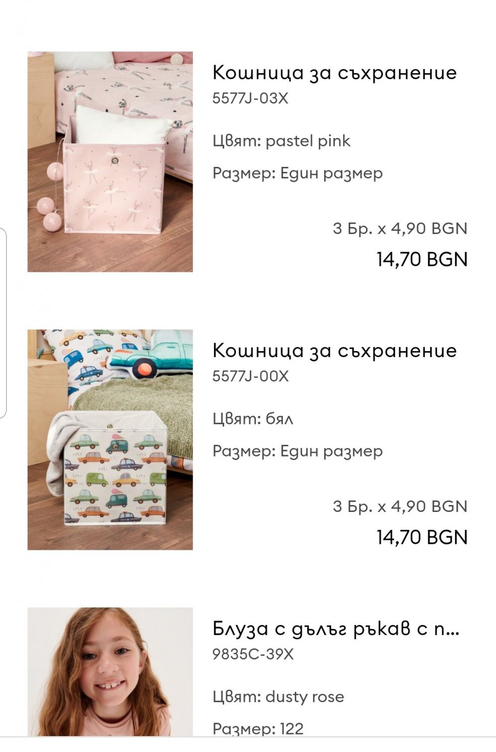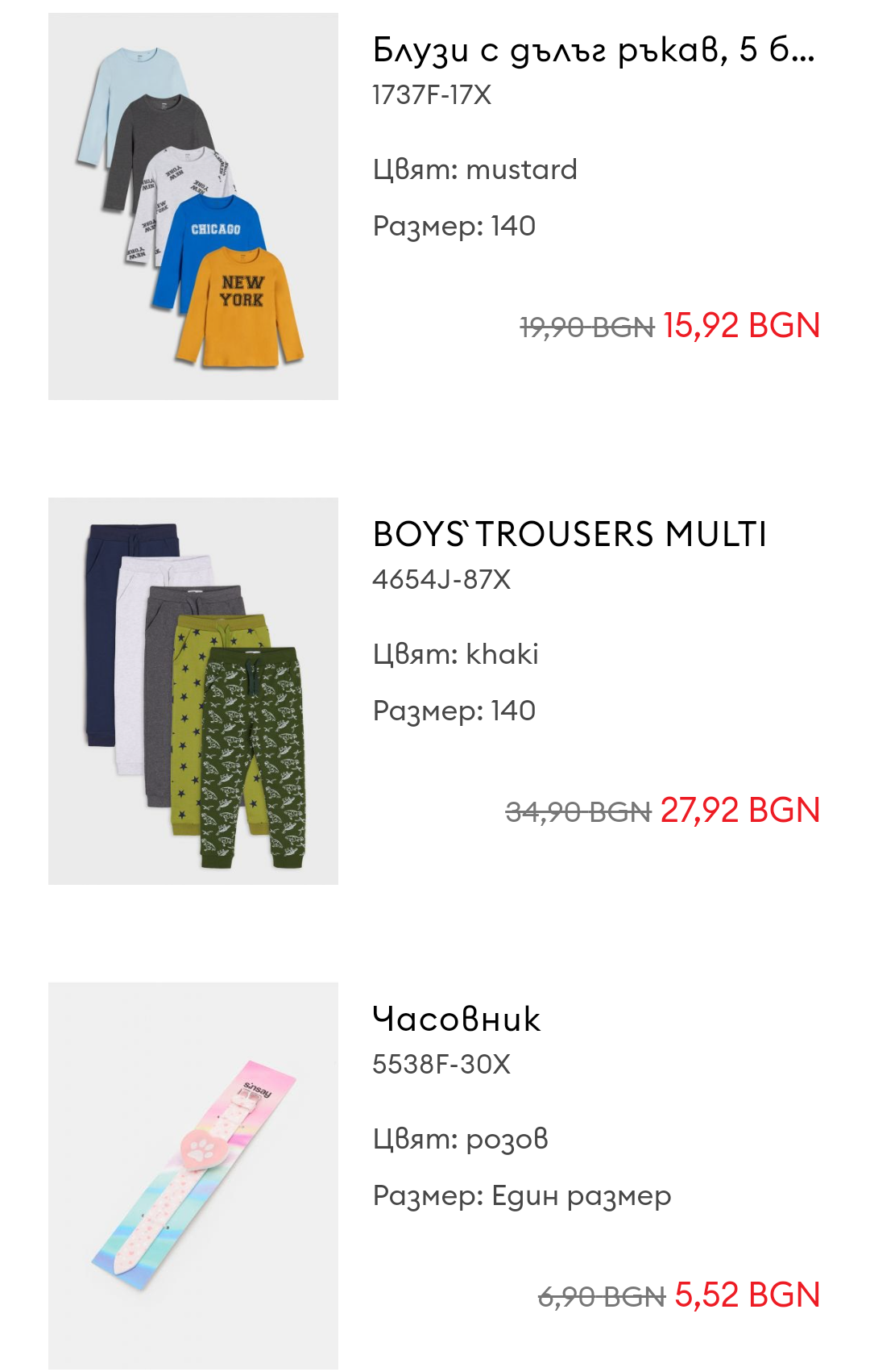 Блузите също не ми харесаха, полиестера им е в повече. В Пепко за 6 лв поне са памучни. Да не казвам, че този път и при мен 140 се оказа голямо - и панталоните и блузите. За по-пълнички деца може да са ок, иначе на дължина са ни ок, но доста широчки.
