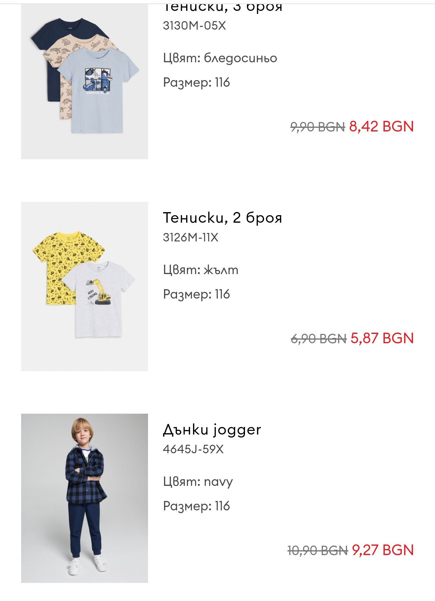 Какви са размерите на детските дрехи на Sinsay?
