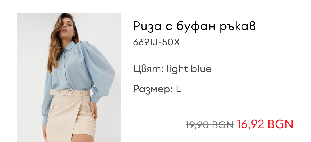 Кройка, изработка - перфект. Размерите отговарят. Не са уголемени. Аз нося Л на ризи и Л ми е точно. Ако искаш да ти подчертава фигурата, взимаш един размер по-малко.
