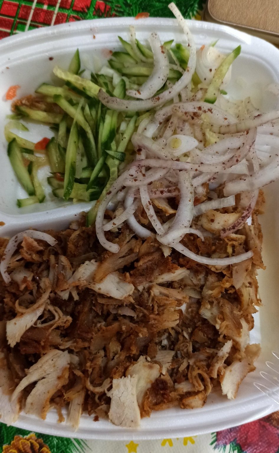 С тоя дюнер дето го обсъждаме тия дни вчера си взех една порция. Без картофи, сосове и питки. В порцията имаше и домати, но докато се сетя да снимам едно едногодишно ми ги сви. Голяма любов към доматите има това дете.