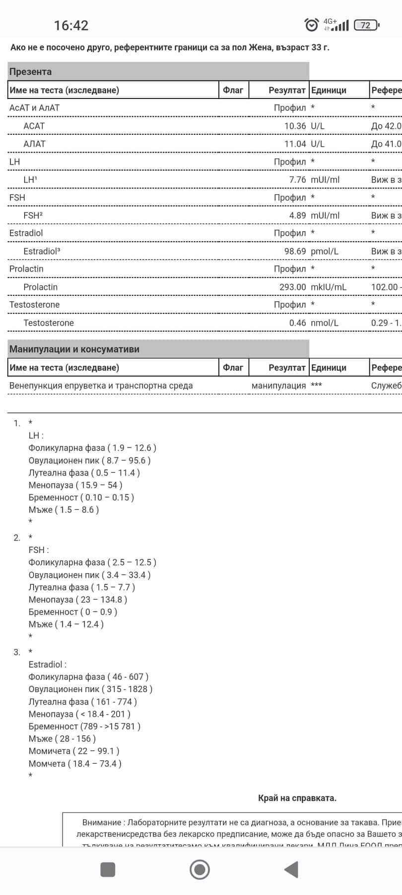 Здравейте, моля Ви за помощ. Получих спонтанен аборт през месец февруари и от тогава правим нови опити. Не успешни засега. Направих си на 3 ден от цикъла, който ми беше ужасно кратък- два дни, хормонални изследвания. моля за някакво мнение относно стойностите.