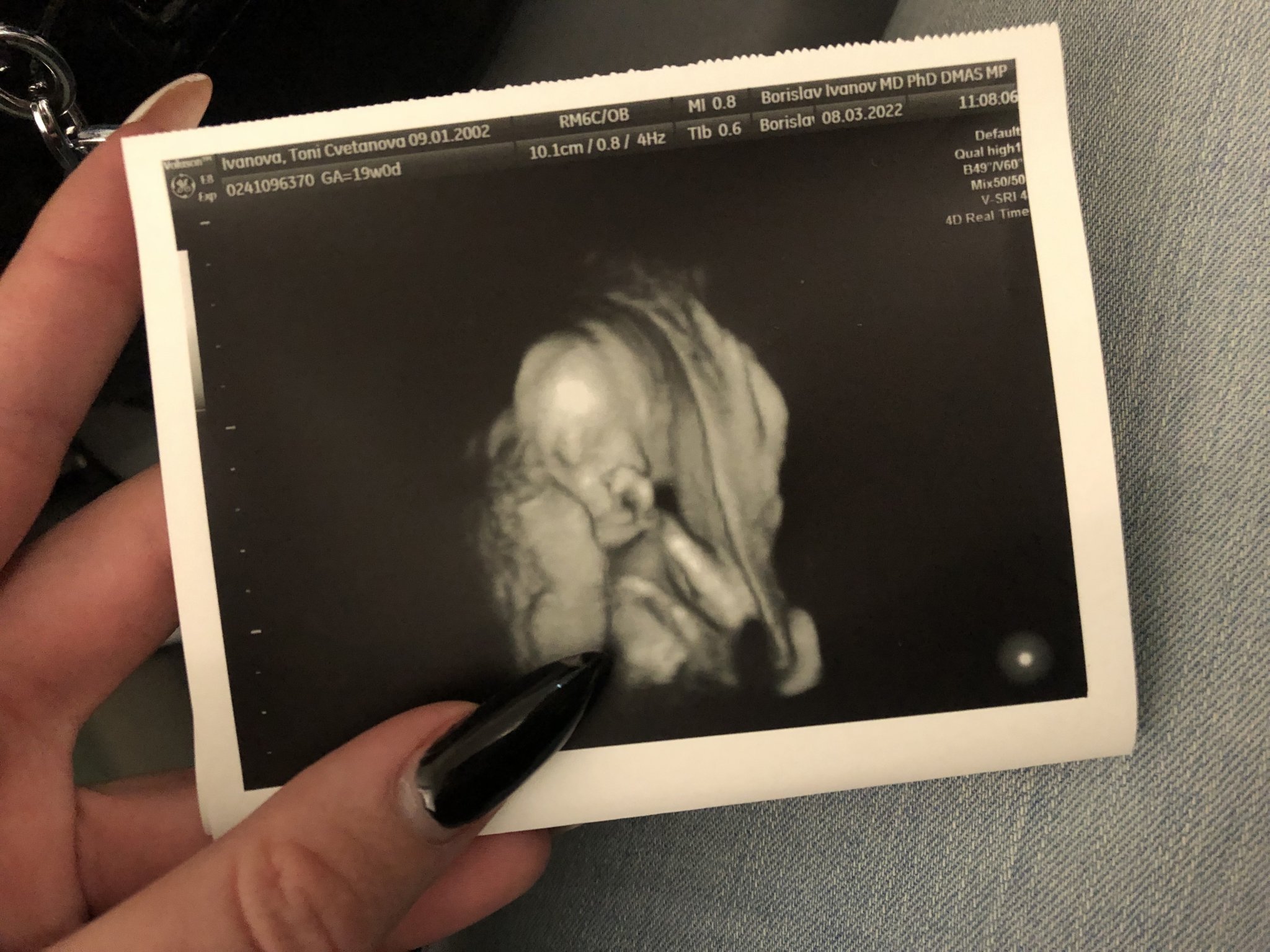 Ето го и нашето бебче! В 19+0, но се измерваше 19+5. Вече е 315 грама.Последно в 17 г.с бях с задна плацента , вече съм с предна и не усещам бебчо…😥