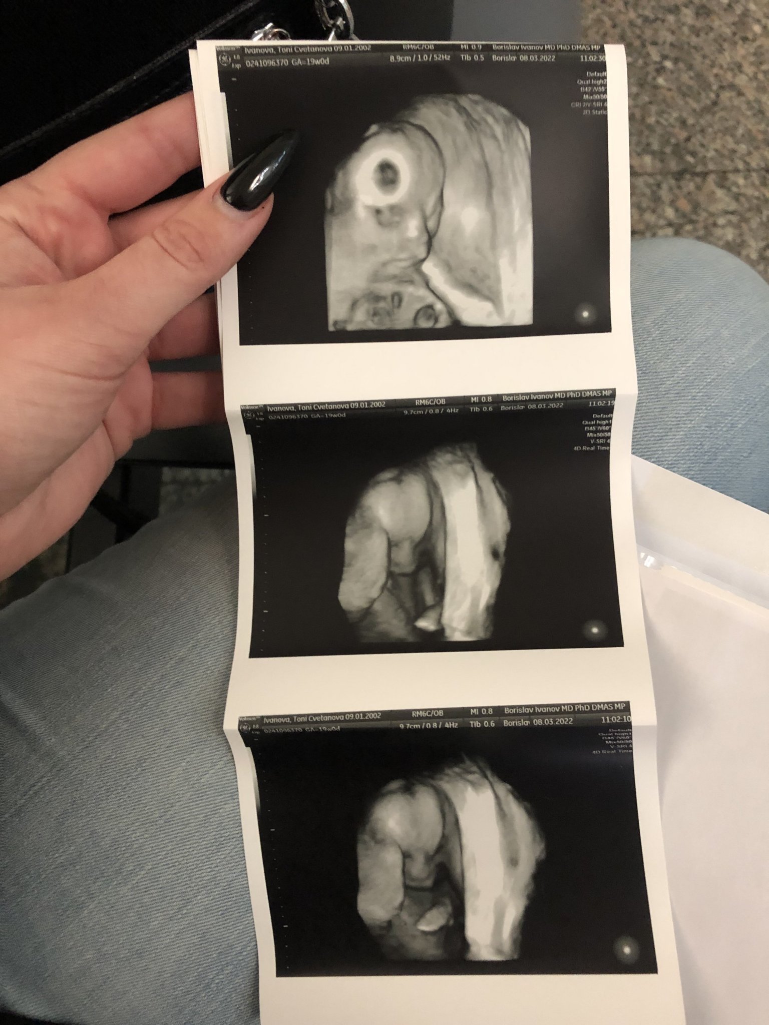 Притесних се обаче за друго. Огледа хубаво сърцето, всичко било наред артерии, клапи и т.н., но ми препоръча да направя преглед при специалист след раждането. Обяснява ми той с някакви термини и примери ми дава, но аз вече се бях притеснила и почти не го разбрах. В листа от прегледа ми е написал "  ехогенен фокус". Имало някакви две бели сенки. Попитах го сега дали трябва да направя фетална ехокардиография, но каза, че няма смисъл, било перфектно за момента, но трябва да се проследи след раждането. Ама как перфектно, пък след раждането на преглед. Не знам, сега ще има да го мисля това. Мисля да се свържа с д-р Маринов за консултация, за да чуя мнението му като специалист.